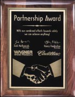 Walnut plaque with CAM, great accompaniment to perpetual plaque at left, to present to to monthly performer. Prices do not include engraving. Please refer to imprint info page.